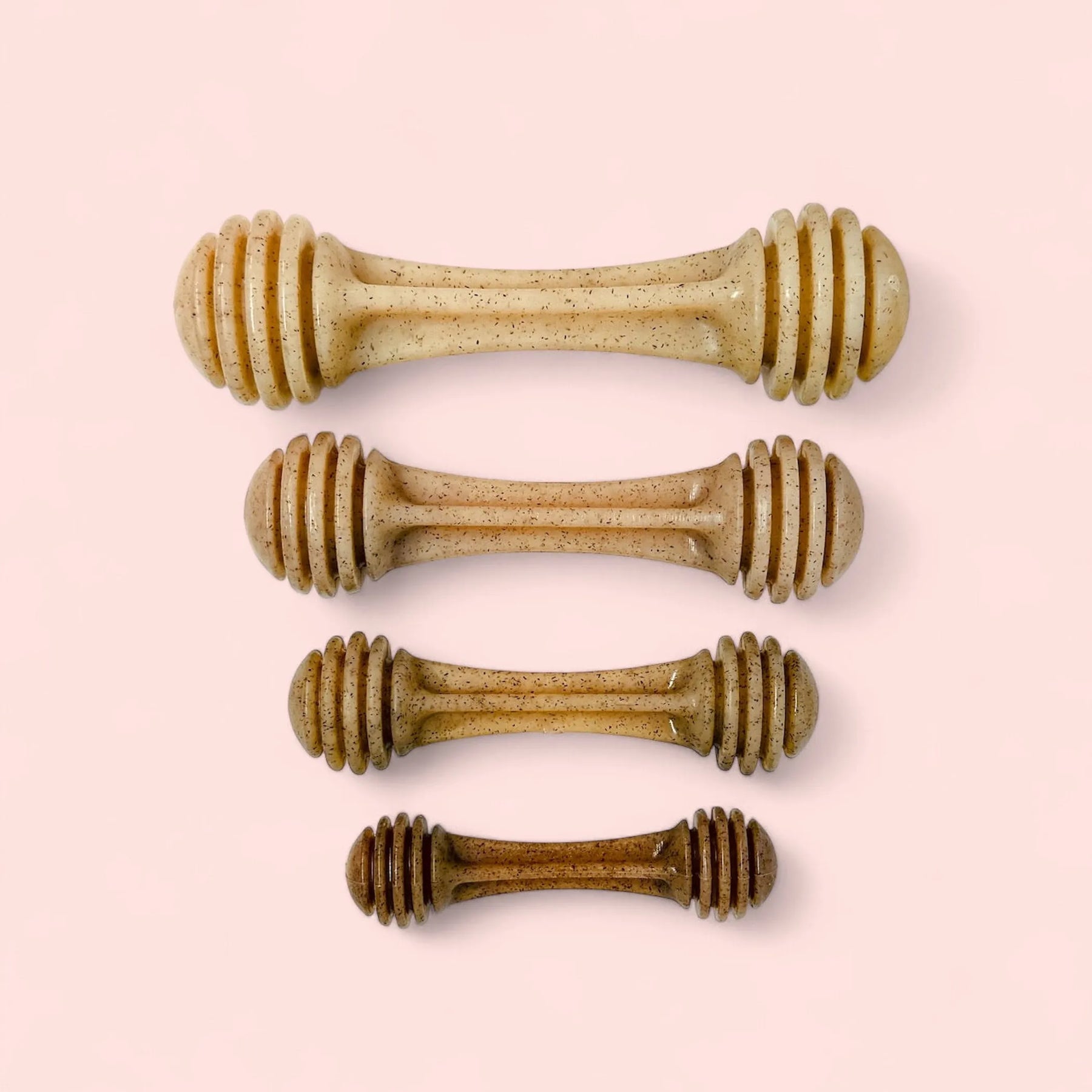 POWER CHEWERS: This ultra-durable nylon eChew bone toy in the shape of a honey dipper is designed and built to withstand even the most aggressive chewers. This toy helps keep your dog entertained and solves problem chewing behaviors. Spread soft foods into the texture of the toy. Made from an innovative nylon and wood composite material.
